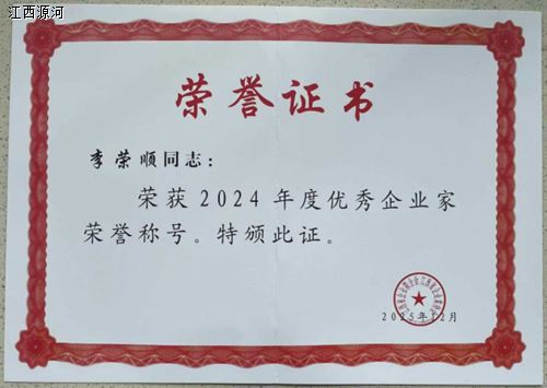 2025年12月30日上午,江西省企业联合会、江西省企业家协会召开了第八届二次会员大会暨2025年年会,会上颁发了2024年度江西省优秀企业、江西省优秀企业家的荣誉证书。我公司荣获2024年度江西省优秀企业称号;董事长李荣顺同志荣获2024年度江西省优秀企业家称号。